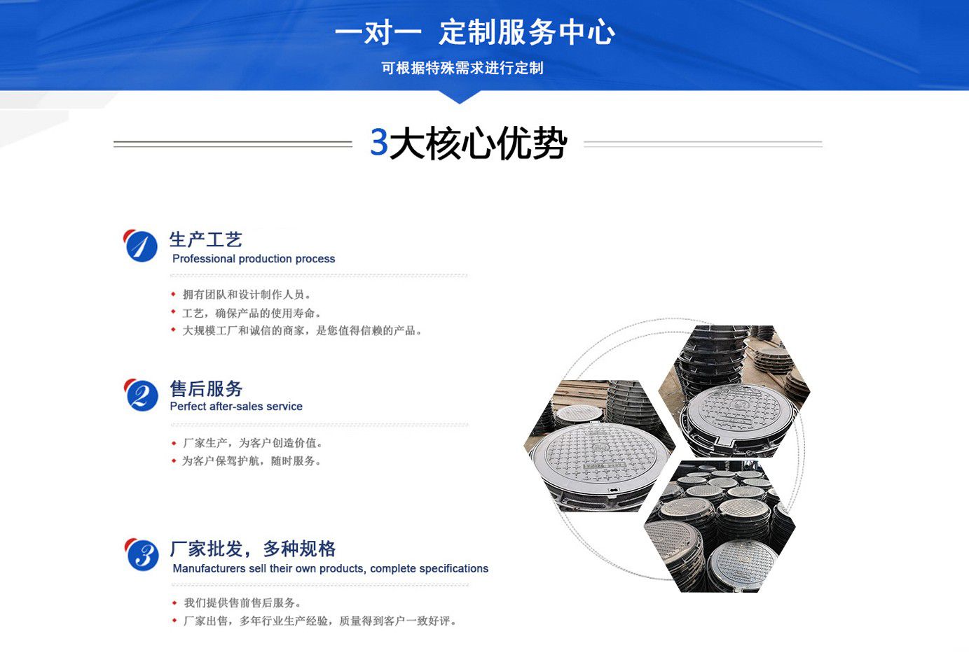 山東聊城健暉鑄造有限公司主營(yíng)各種球墨鑄鐵井蓋,球墨鑄鐵防盜井蓋,球墨鑄鐵方形井蓋,球墨鑄鐵井蓋廠家等產(chǎn)品,可廣泛應(yīng)用于市政建設(shè)、軌道交通設(shè)施、城市園林綠化、安防配套設(shè)施、石油化工等諸多領(lǐng)域。 產(chǎn)品采用良好的工藝流程,以確保產(chǎn)品質(zhì)量的穩(wěn)定性:以良好的檢測(cè)設(shè)備,確保質(zhì)量的可靠性。廣泛應(yīng)用于國(guó)內(nèi)外城市的市政建設(shè),通信,自來(lái)水,消防,園林,環(huán)保等行業(yè),產(chǎn)品大獲贊譽(yù)! 我們堅(jiān)持“質(zhì)量為本、用戶至上、科技創(chuàng)新、科學(xué)管理”的經(jīng)營(yíng)方針。 面向未來(lái),我們積極響應(yīng)新時(shí)代的號(hào)召,走“一帶一路”、堅(jiān)持“綠色環(huán)保”的國(guó)家方針政策,秉承“安甄致選,普利天下”的企業(yè)理念,共同鑄就新時(shí)代的輝煌篇章。...